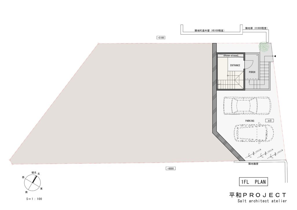 前面道路から敷地の奥にかけて、高低差のある土地です。
